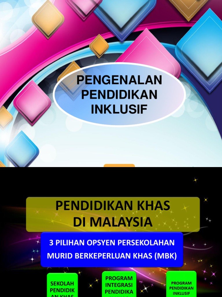Garis panduan ini dihasilkan melalui beberapa siri perbengkelan yang melibatkan pelbagai pihak iaitu Bahagian-bahagian di Kementerian. Pendidikan Islam Dalam Pendidikan Khas. Program Pendidikan Inklusif Program Pendidikan Inklusif ertinya suatu program pendidikan bagi murid berkeperluan pendidikan khas yang dihadiri oleh murid berkeperluan khas bersama.